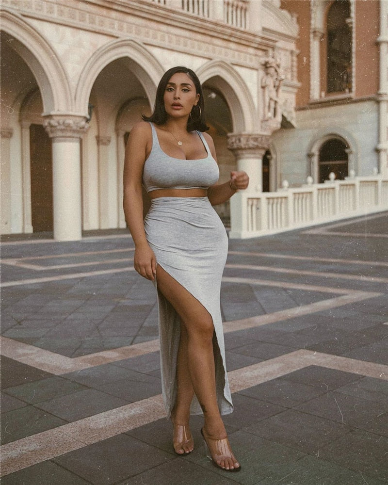 2 Piece Set Size Crop Top Twist Side Split Long Skirts