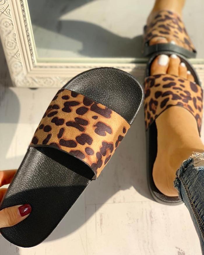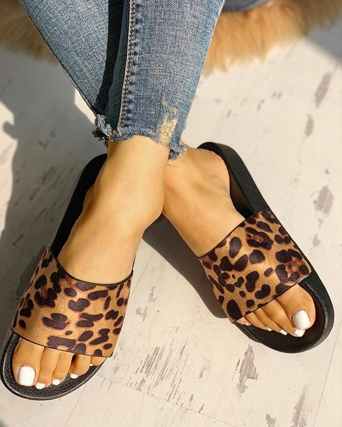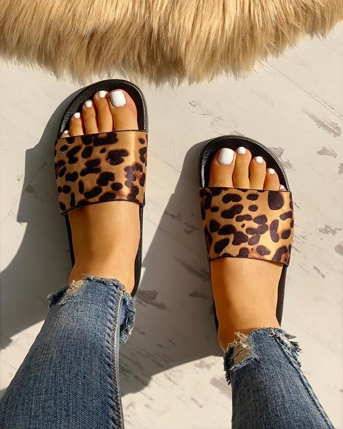 LEOPARD PATTERN OPEN TOE SLIPPERS