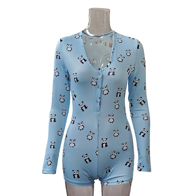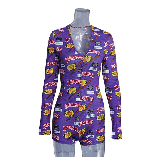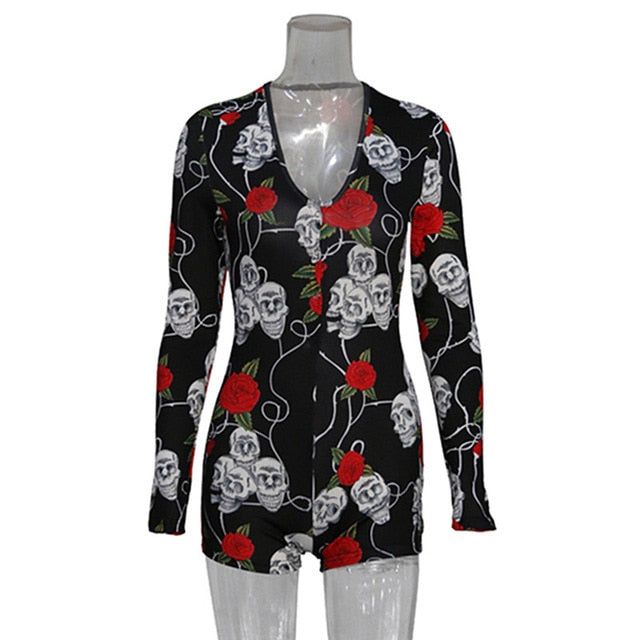 Low Cut Long Sleeve Print Lounge Romper